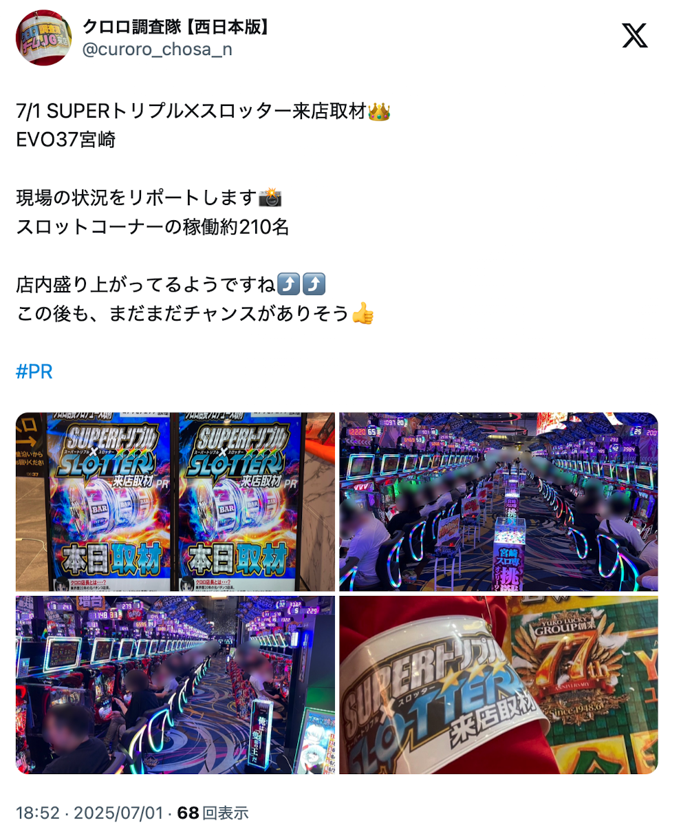 7月1日 EVO37宮崎|SUPERトリプル✕スロッター来店取材結果【初来店】