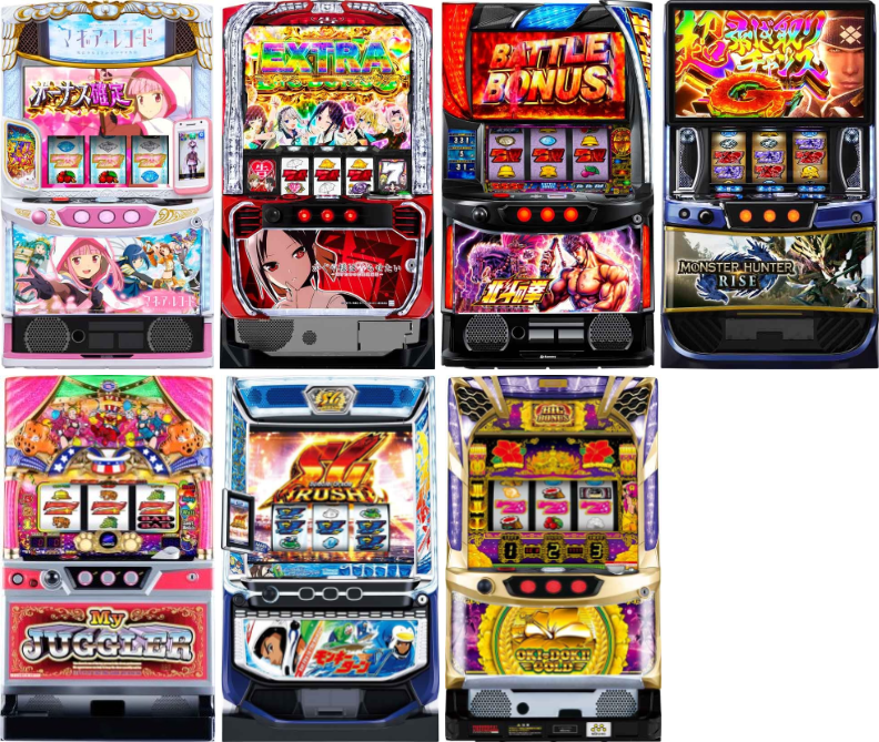 マイジャグⅤが5台、沖ドキGOLDが3台、かぐや様・北斗の拳・モンハンライズ・モンキーⅤが2台ずつランクイン!