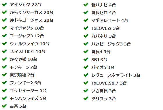 当ホールの設置機種