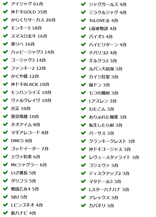 当ホールの設置機種