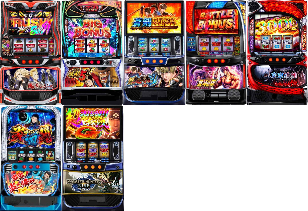 当日の出玉ランキングトップ7台の中に、