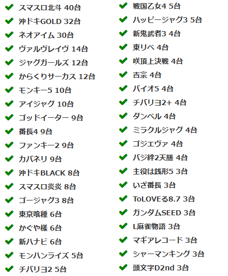 当ホールの設置機種