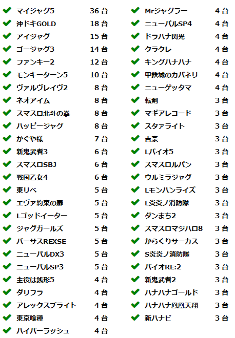 当ホールの設置機種