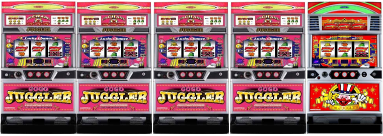 ジャグラー2箇所、モンキーターン、沖ドキゴージャス2箇所となっていて、