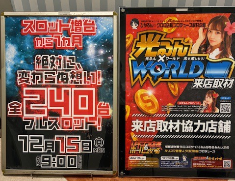 12月15日 PSブランド佐野店|光るん✕ワールド結果