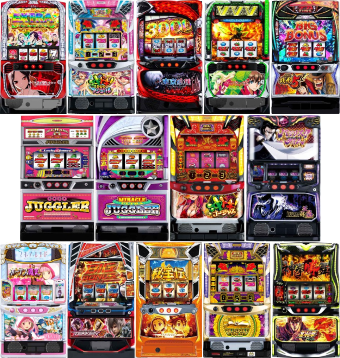 スロットの当日の出玉ランキングトップ18台の中に、