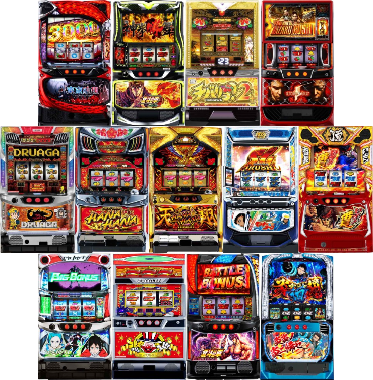 スロットの当日の出玉ランキングトップ14台の中に、