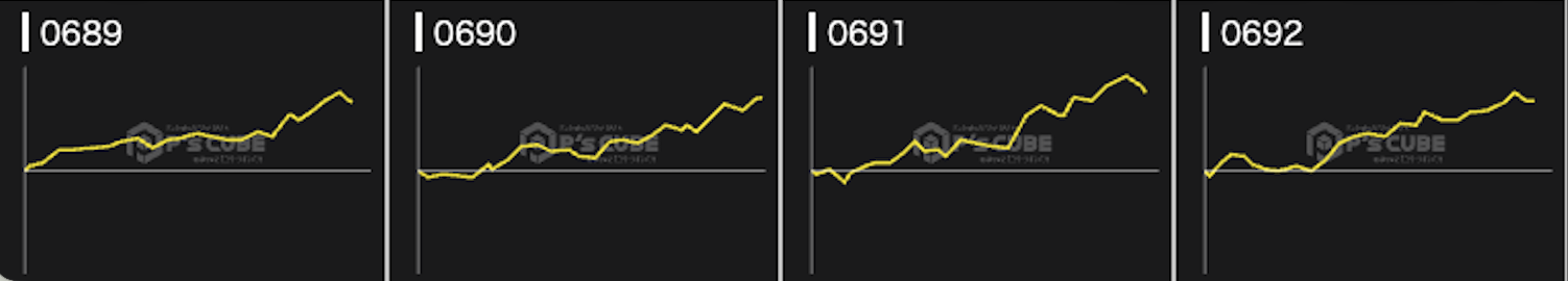 特に689番台〜692番台ではスランプグラフも理想的な右肩上がりを描いており、打ち手は終日に渡り同機のポテンシャルを余すことなく発揮できておったようだ。