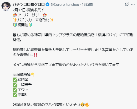2月17日 ポパイ|アニバーサリー✕パチンカー結果【初来店】