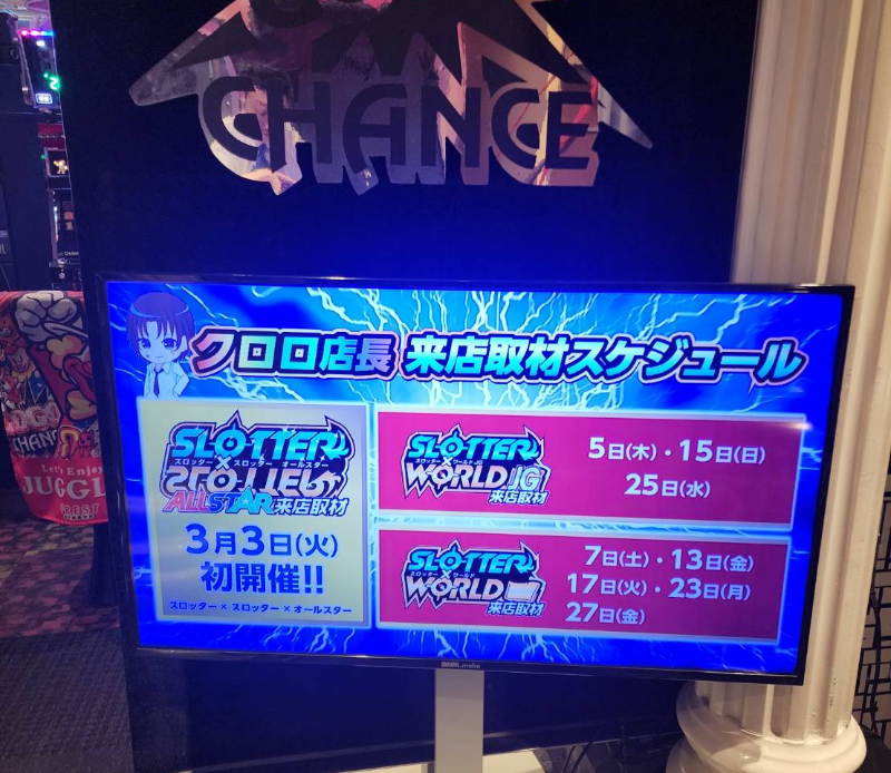 今回も『スロッター✕ワールド』での立ち回りとなった当ホール。
