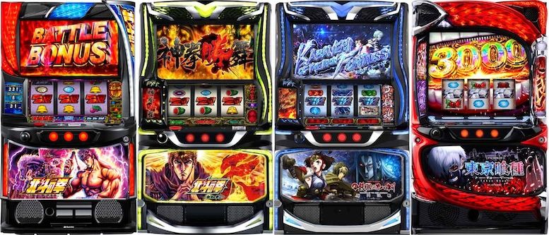 まず当ホールの推し機種から見ていくと東京喰種では万枚オーバーが3台飛び出し圧倒的出玉感を演出!