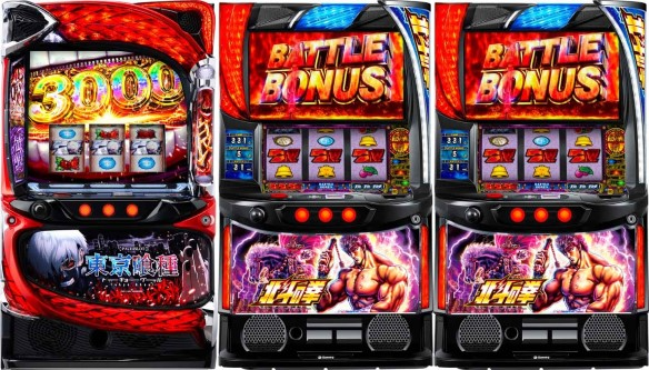 1085番台スマスロ北斗を含める3台全てが、序盤から右肩上がりに出玉を伸ばす安定感ある内容を見せつけた。