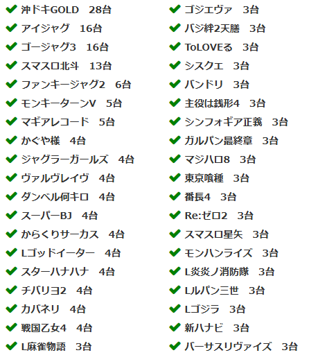 当ホールの設置機種